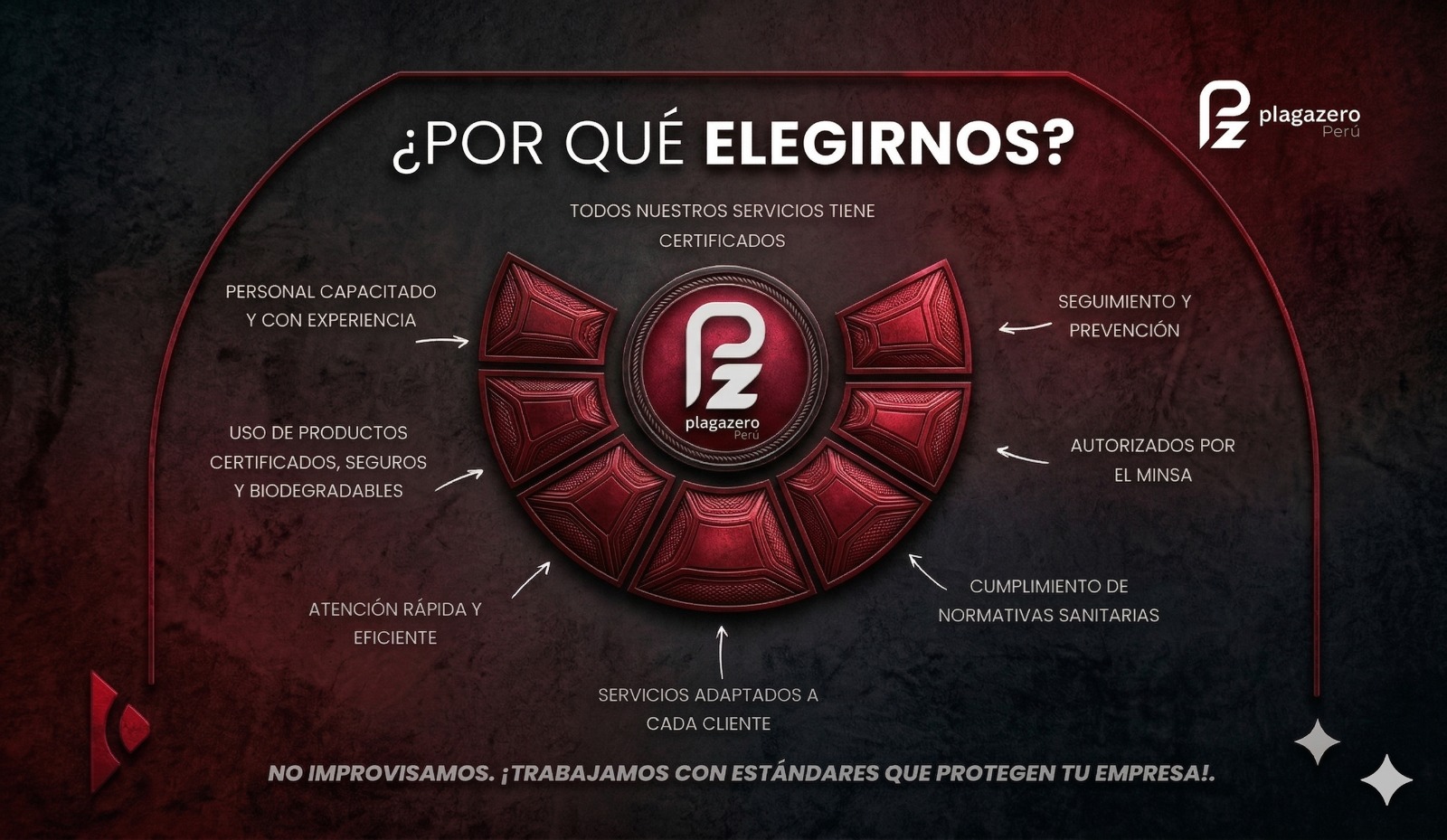 “Proteger la salud pública y el patrimonio de nuestros clientes en todo el Perú, mediante la presentación de servicios de fumigación y saneamiento de alta calidad. Nos compremetemos a utilizar productos autorizados y métodos sostenibles que aseguren la eliminación efectiva de las plagas, minimizando el impacto ambiental y garantizando la seguridad de las personas y mascotas. ”
